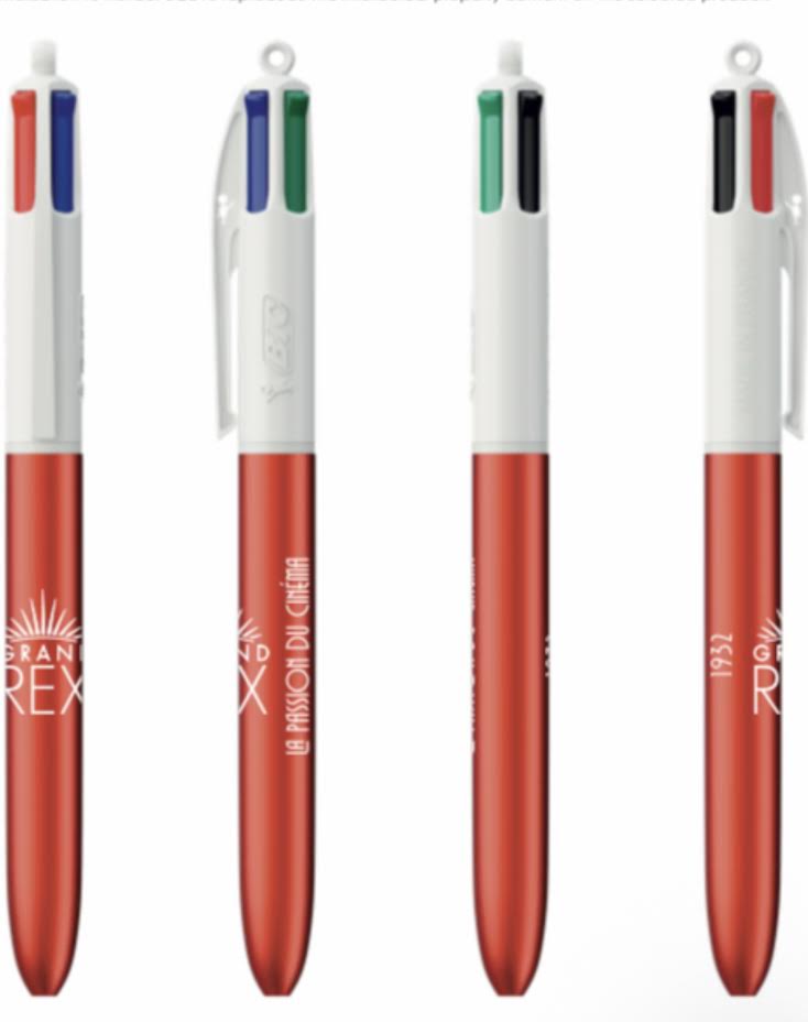 STYLO BIC 4 COULEURS « GLACE » GRAND REX Fabrice | Créé le 5 janvier 2026 | Article modifié le 5 janvier 2026La boutique du Grand RexSTYLO BIC 4 COULEURS « GLACE » GRAND REX 6,90€ quantité de STYLO BIC 4 COULEURS "GLACE" GRAND REX Ajouter au panier Catégorie : Stylos Description Informations complémentaires Description Stylo Bic 4 couleurs (vert, noir, rouge, bleu) modèle GLACE Informations complémentaires Poids 0,020 kg Produits similaires Stylo « Grand Rex, La star c’est vous ! » 2,90€ Ajouter au panier Stylos « Le Grand Rex 1932 » 2,90€ Choix des options Ce produit a plusieurs variations. Les options peuvent être choisies sur la page du produit STYLO BIC 4 COULEURS « NOIR » GRAND REX ART DECO 6,90€ Ajouter au panier STYLO BIC 4 COULEURS « SHINE » TOUR DU GRAND REX 6,90€ Ajouter au panier